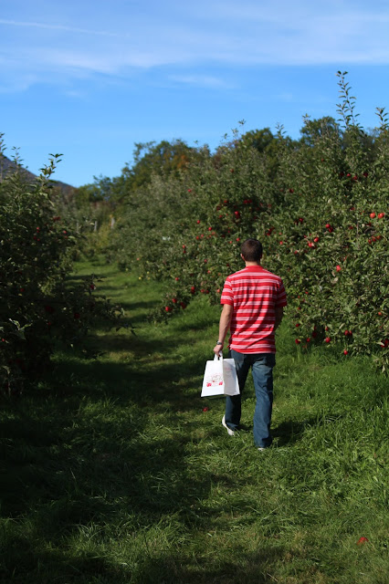 We picked mostly Gala's, since they are our favorite. We also got 10 Macoun to make some apple crisp, which I of course will share with you soon. It was a great afternoon to spend some time in the orchard. The place was so big, it kind of felt like we had it to ourselves and it was absolutely gorgeous nestled there in the mountains. After we picked all of the red fruit we could carry, we paid for our heavy 1/2 bushel bag (adding 2 donuts for Jeremy), and made our way back to our humble abode. Apple picking is just the best.